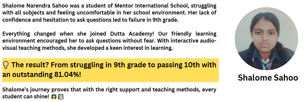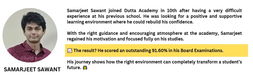 “Explore the voices of success at Dutta Academy through our compelling testimonials. Hear firsthand experiences from our satisfied students and parents, narrating stories of achievement, growth, and the transformative power of our educational offerings. Check out our testimonials to discover how Dutta Academy is making a positive impact on the academic journeys of those who choose to excel with us.”